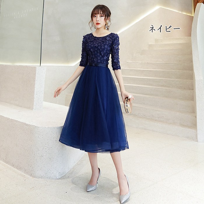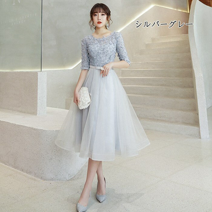 結婚式 ワンピース パーティードレス フォーマル 花柄 レース 膝下 膝丈 袖 五分丈 披露宴 お呼ばれ 大人 20代30代40代50代 成人式 袖あり 袖付き フォーマルドレス 服 服装 ミセス 大きいサイズ 20代30代40代 レディース ドレス 体型カバー 結婚式ドレス 同 七五三